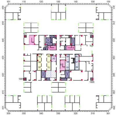 De werkelijke afmetingen van de dragende core-columns zijn angstvallig uit zicht gehouden.